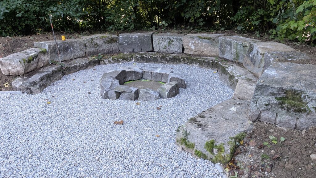 Nun geht’s an den Vorplatz, die Feuerstelle ist bereits erneuert.